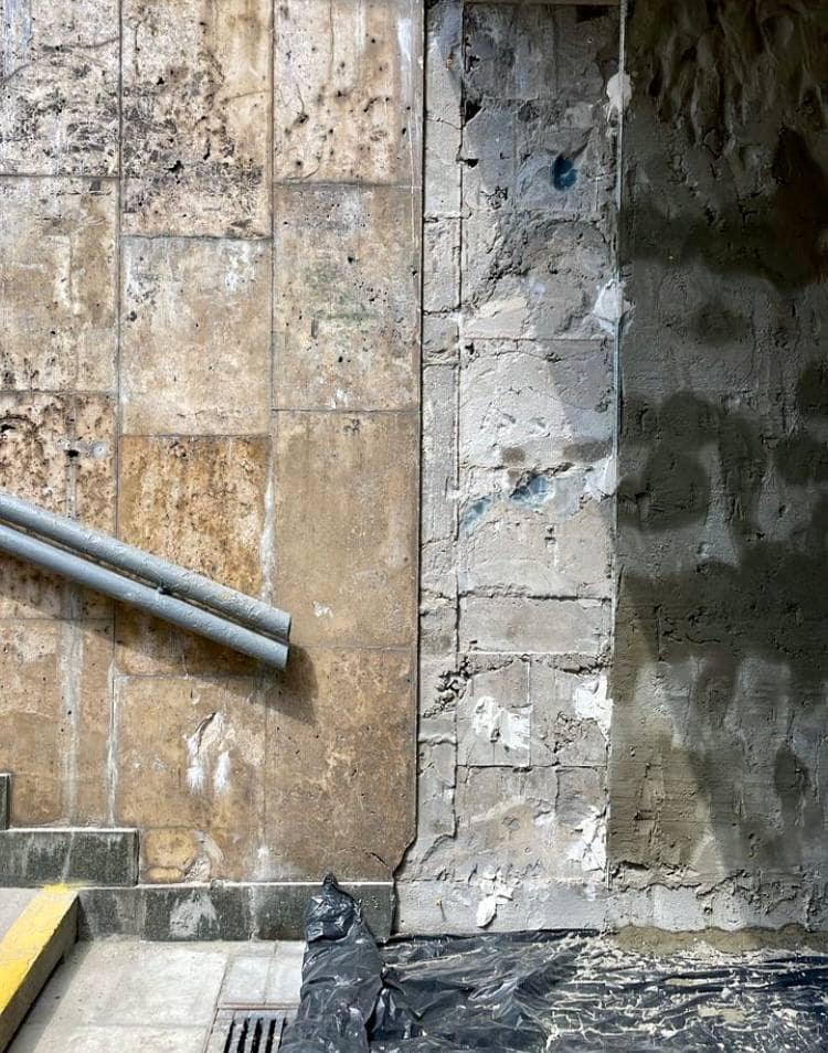 У Києві у підземному переході поблизу станції метро “Університет” збивають дороге облицювання натуральним травертином, аби замість нього викласти звичайну гранітну плитку. Такий ремонт переходу разом з вулицею столиці обійдеться в 12 млн грн. У мережі уже розгорається скандал щодо доцільності таких робіт.